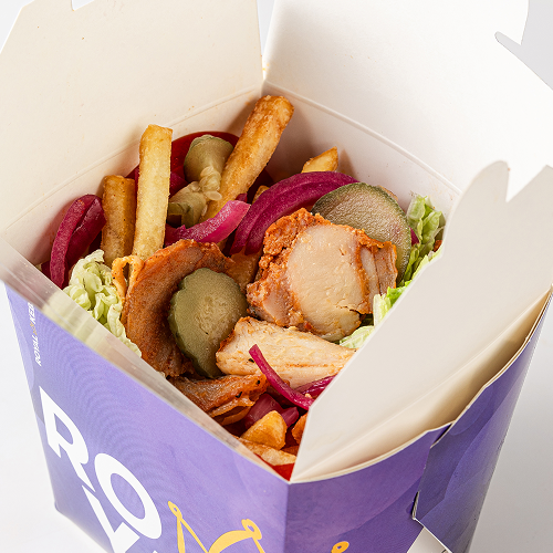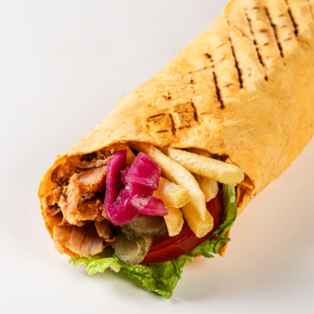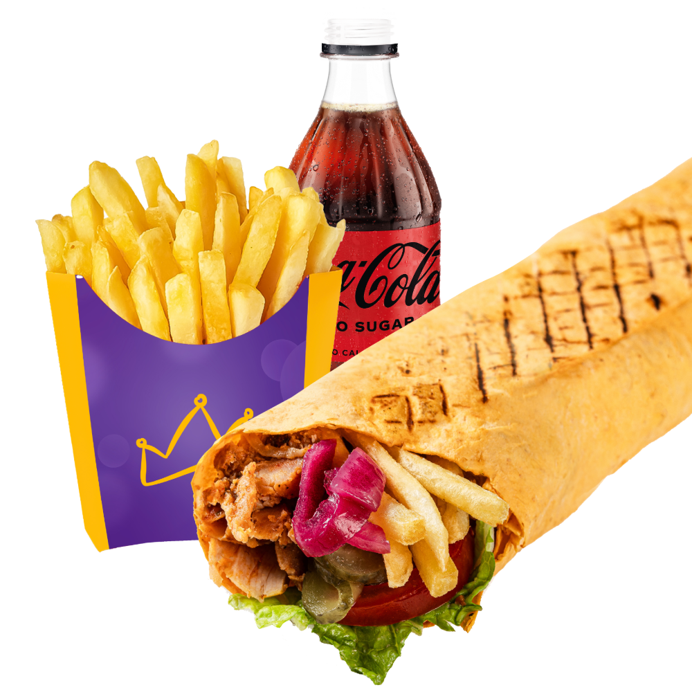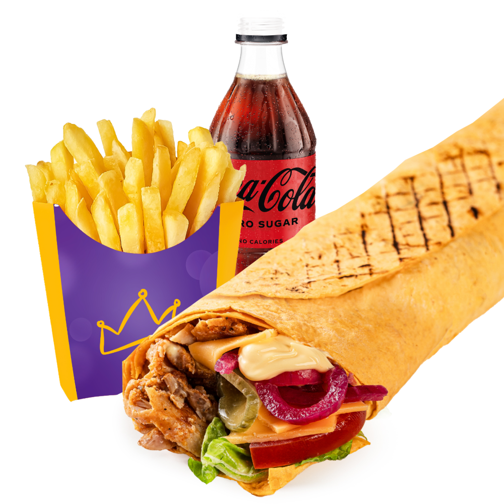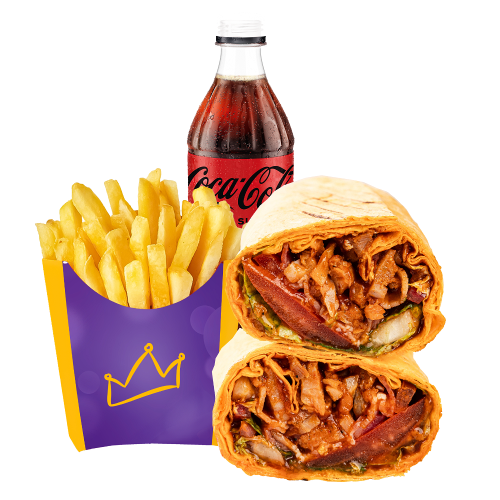Junior Kids Kebab складається з хрусткого лаваша, мікс салату (без цибулі), маринованих огірків, соковитих нагетсів і авторського соусу на основі йогурту